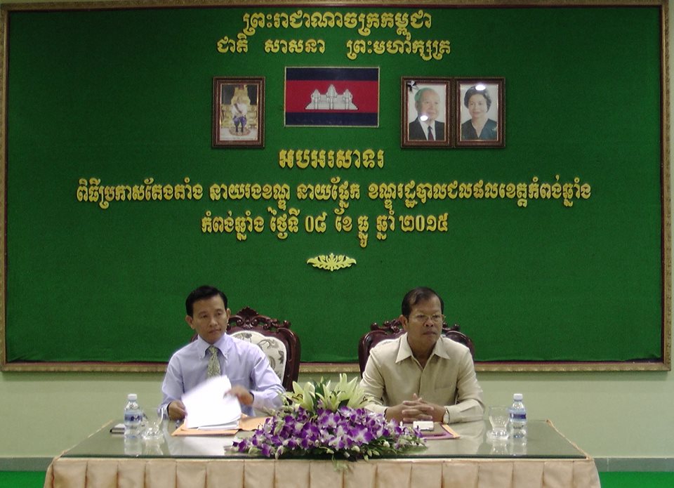 នៅព្រឹកថ្ងៃទី០៨ ខែធ្នូ ឆ្នាំ២០១៥ នៅសាលាខេត្តកំពង់ឆ្នាំង បានធ្វើពិធីប្រកាសតែងតាំង នាយរងខណ្ឌ និងនាយផ្នែករដ្ឋបាលជលផល ក្រោមអធិបតីភាពឯកឧត្តម ចេង ញ៉ាន់ អភិបាលរងខេត្ត និងលោកបណ្ឌិតហាវ វិសិទ្ធ អនុប្រធានរដ្ឋបាលជលផល តំណាងឯកឧត្តម អេង ជាសាន្ត ប្រតិភូរាជរដ្ឋាភិបាលកម្ពុជា ទទួលបន្ទុកប្រធានរដ្ឋបាលជលផល និងមានការអញ្ជើញចូលរួមពីសោម ភិរុណ នាយខណ្ឌរដ្ឋបាលជលផល លោក លោកស្រីប្រធាន អនុប្រធានមន្ទីរ អង្គភាពជុំវិញខេត្ត និងអភិបាល អភិបាលរងក្រុង ស្រុកទាំង៨ក្នុងខេត្តផងដែរ។